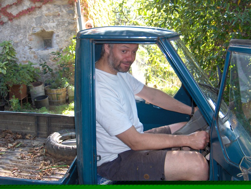Vi har det morsomt med Ape’n, den lille lastebilen med 3 hjul som er så populær her i Italia. Vi ser den over alt; putrende opp og ned bakkene i landsbyen, hvinende rundt svingene i Calci og som en sinke i trafikken på motorveien. Den ligner vel mest en overbygget moped og hadde opprinnelig et begrenset bruksområde for bonden som trengte å frakte ting og tang rundt i de smale gatene i landsbyene her. Til dette bruk er den perfekt.