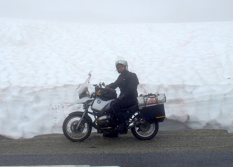 På Strynefjell lå snøskavlene langs veien. Ikke så rart oppe på godt over tusen meter. Men sjåføren ser litt stuss ut.