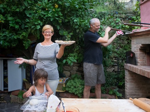 Deretter slengte vi sammen et par foccaciaer. Noen var gaver til naboene i gata mens resten skulle få følge med gjestene hjemover.