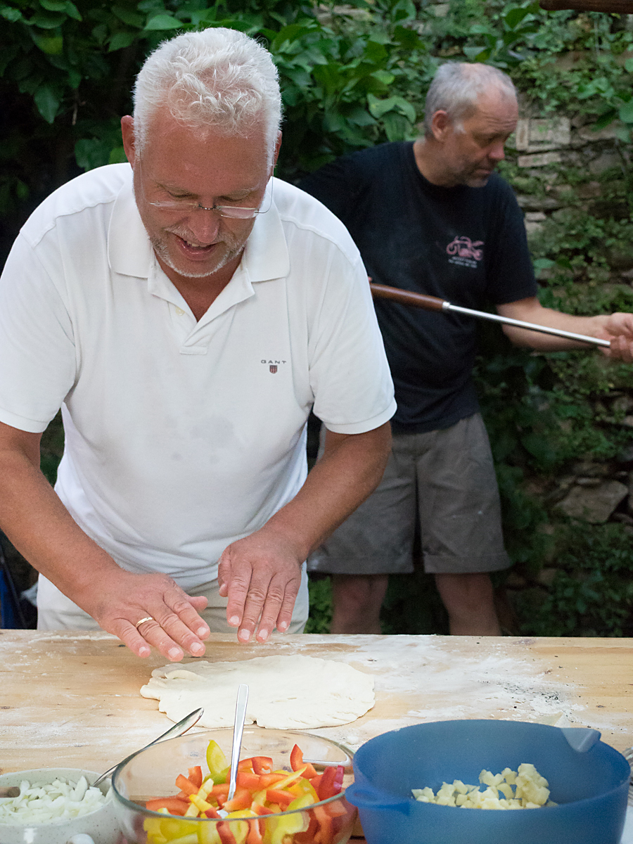 Første gang vi fyrte opp pizza-ovnen kalte vi det en test – denne gangen må vi nesten si at det var innvielse. Kompetansen var hevet mange hakk og 12 små og store pizzakokker var i sving.